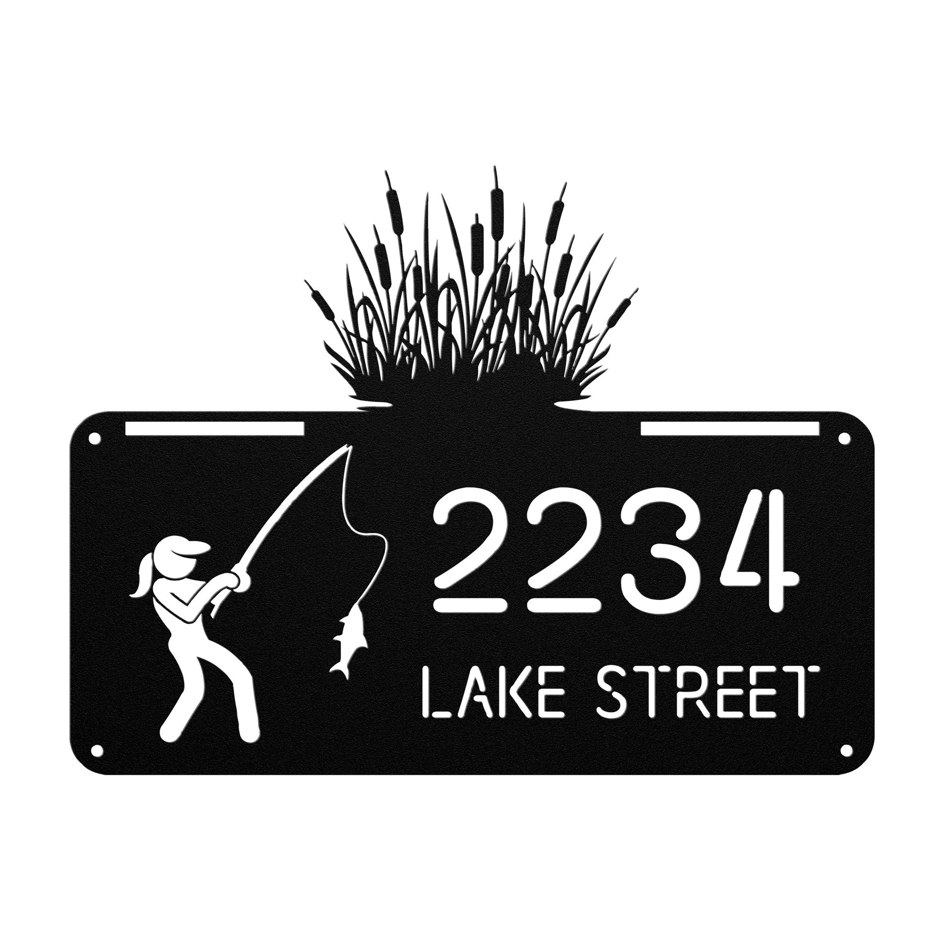 Welcome guests to your home, cottage, or getaway with this address sign featuring a fishergirl with a Lake Vibing attitude. Crafted from durable 18-gauge steel and available in five powder-coated colors, it’s built to withstand the elements.