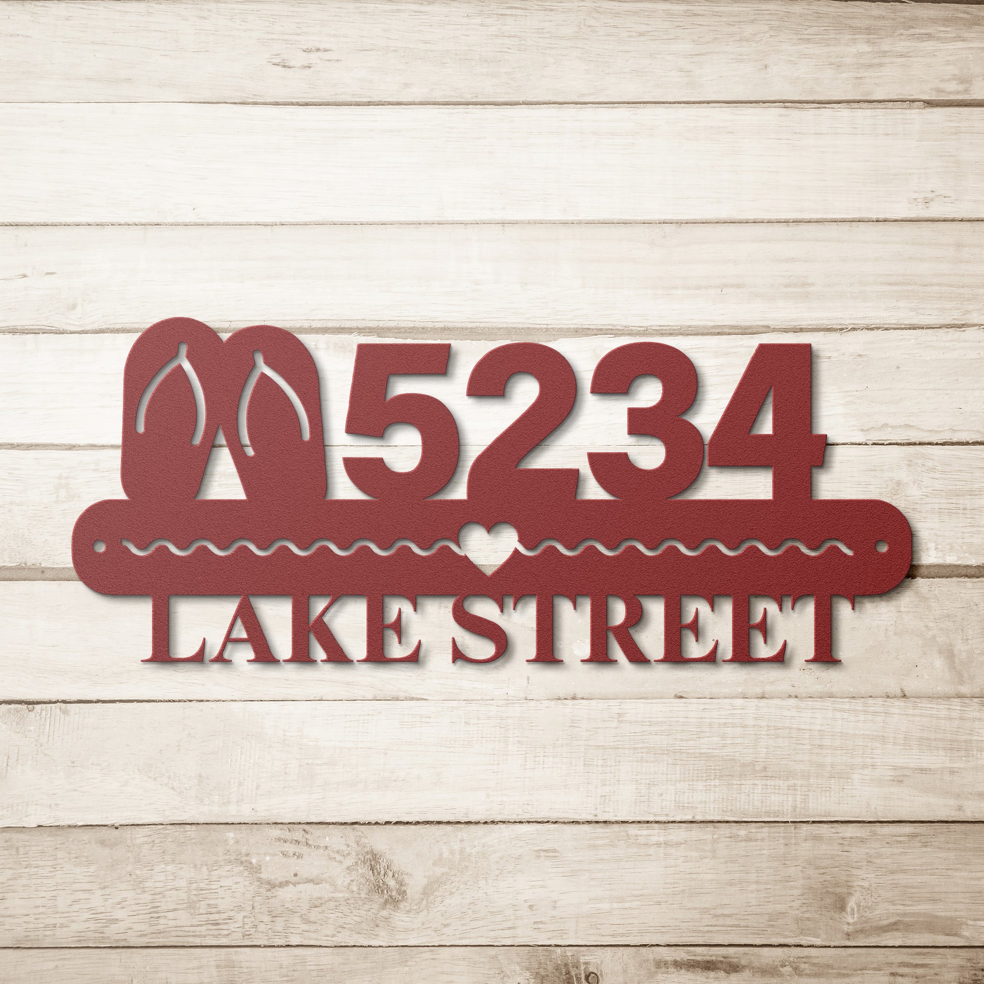 Welcome guests to your summer home, cottage, or getaway with this address sign featuring pair of flip-flops. Show off your Lake Vibing ways year long with this durable 18-gauge steel and available in five powder-coated colors.