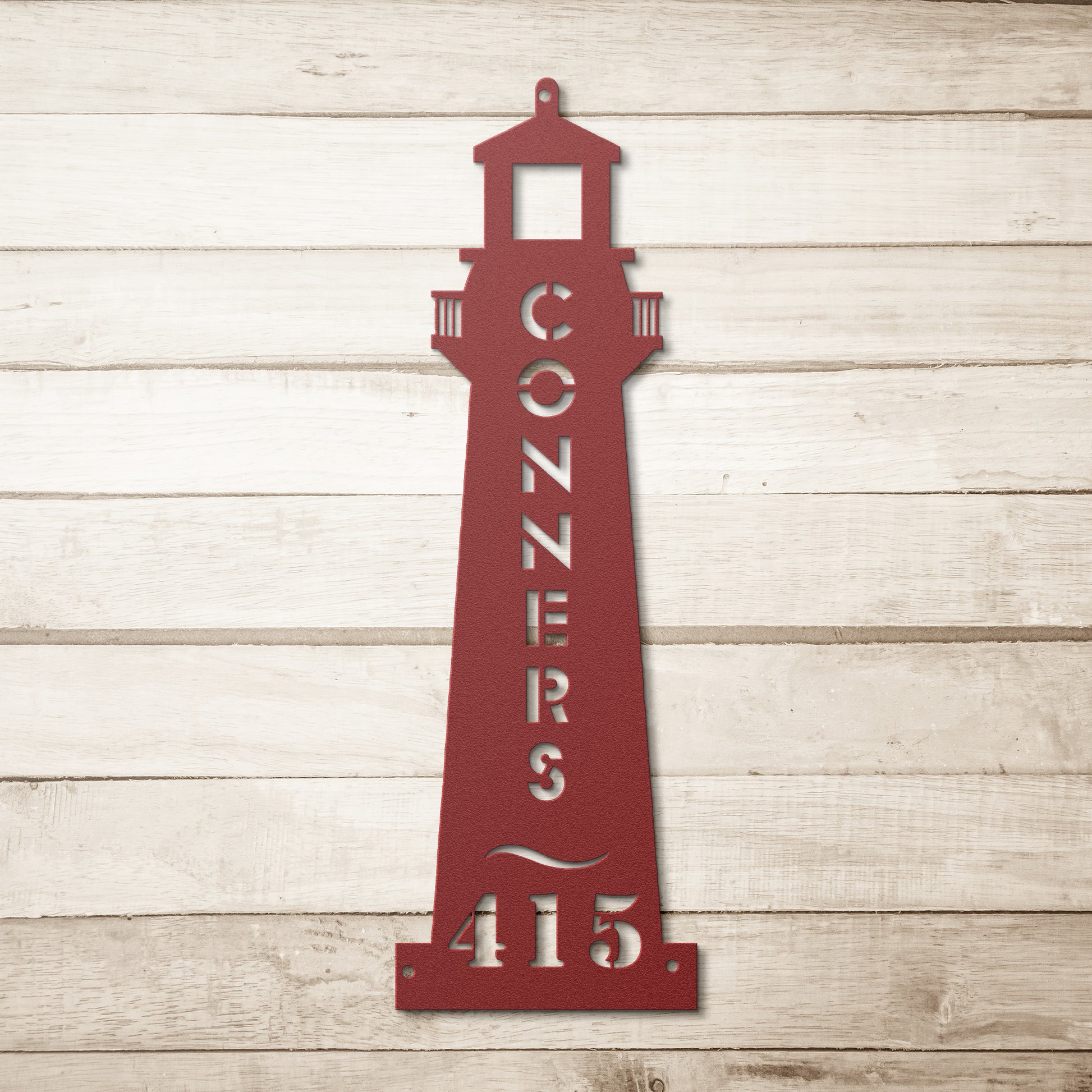 Add a coastal touch to your home, cottage, or vacation retreat with a custom lighthouse metal sign featuring your family name and street number. Made from sturdy 18-gauge steel and available in five powder-coated colors, this sign is built to last in any weather. Perfect for adding a personalized, nautical charm to your space, indoors or out!