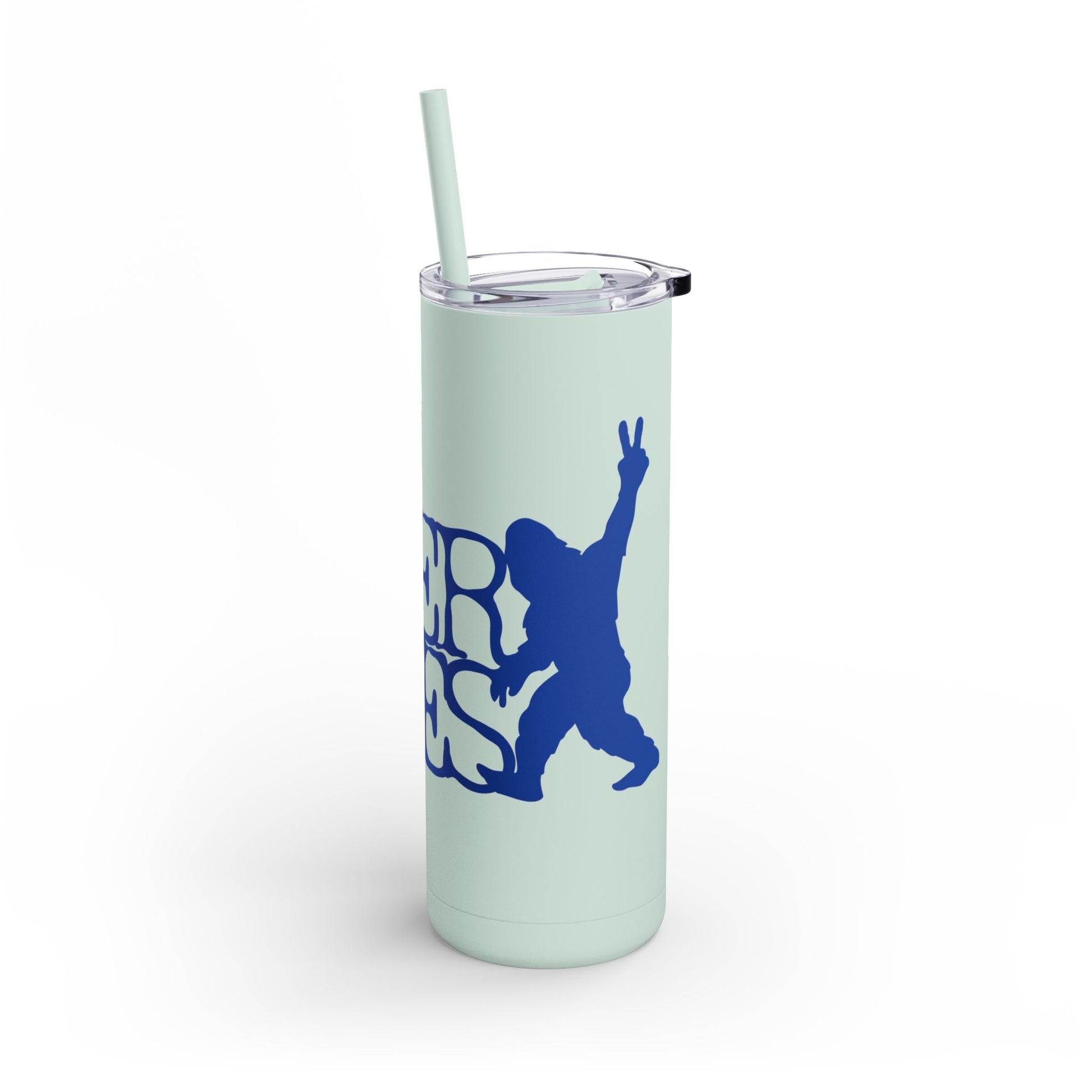 This skinny matte tumbler isn’t just a drink holder - it’s your all-day, every-adventure companion, personalized with your lake’s name and our chill Bigfoot flashing a peace sign. With a sleek, powder-coated finish in colors that pop like a perfect sunset, it’s ready for early-morning coffee on the dock, iced tea in the pontoon cupholder, or a road trip singalong to your favorite playlist. Keeps your drinks just the way you like them, steaming for up to 12 hours or ice-cold for 24—so you can focus on the good vibes.